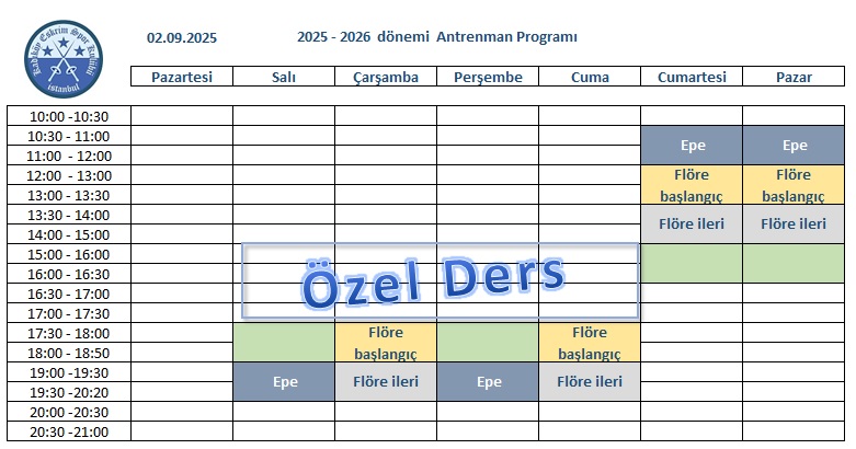 Özel ders: belirli bir seviyeye gelmiş sporcular antrenmanlara düzenli devam ediyorlarsa özel ders alabilirler ve ücretsizdir.